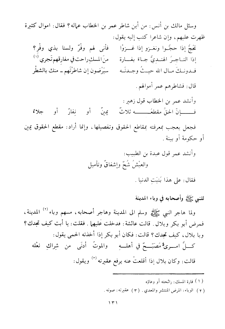 وسئل مالك بن أنس: من أين شاطر عمر بن الخطاب عماله؟ فقال: اموال كثيرة ظهرت عليهم، وإن شاعرا كتب إليه يقول: