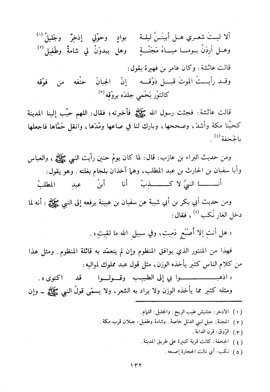 ومثله كثير مما يأخذه الوزن ولا يراد به الشعر، ولا يسمّى قول النبي صلّى الله عليه وسلّم- وإن
