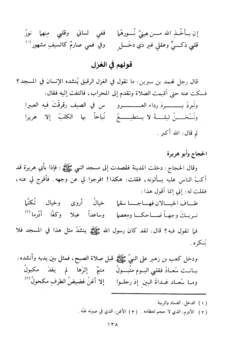 قال رجل لمحمد بن سيرين: ما تقول في الغزل الرقيق ينشده الإنسان في المسجد؟