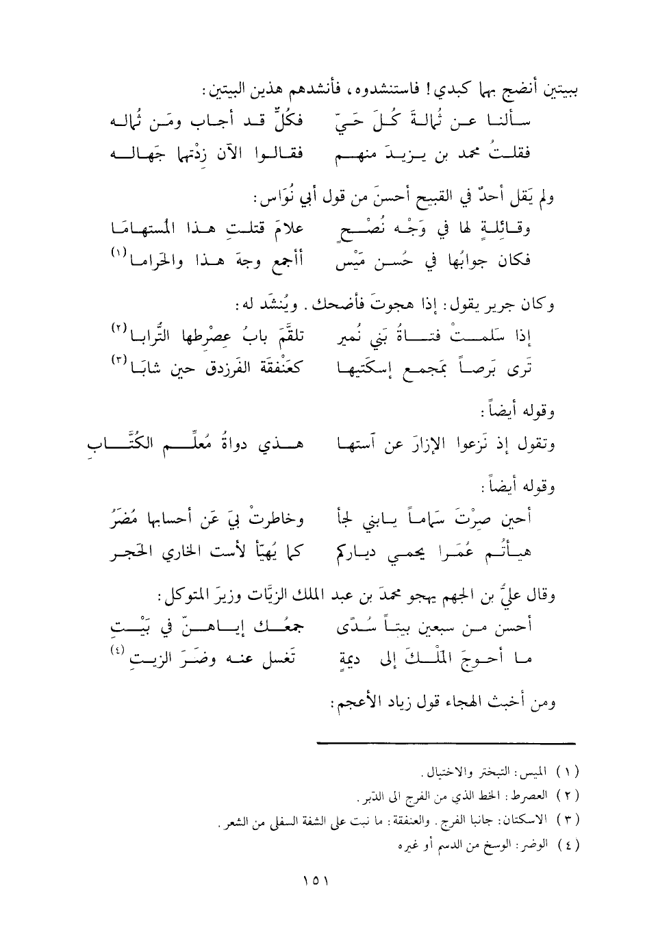 ولم يقل أحد في القبيح أحسن من قول أبي نواس: