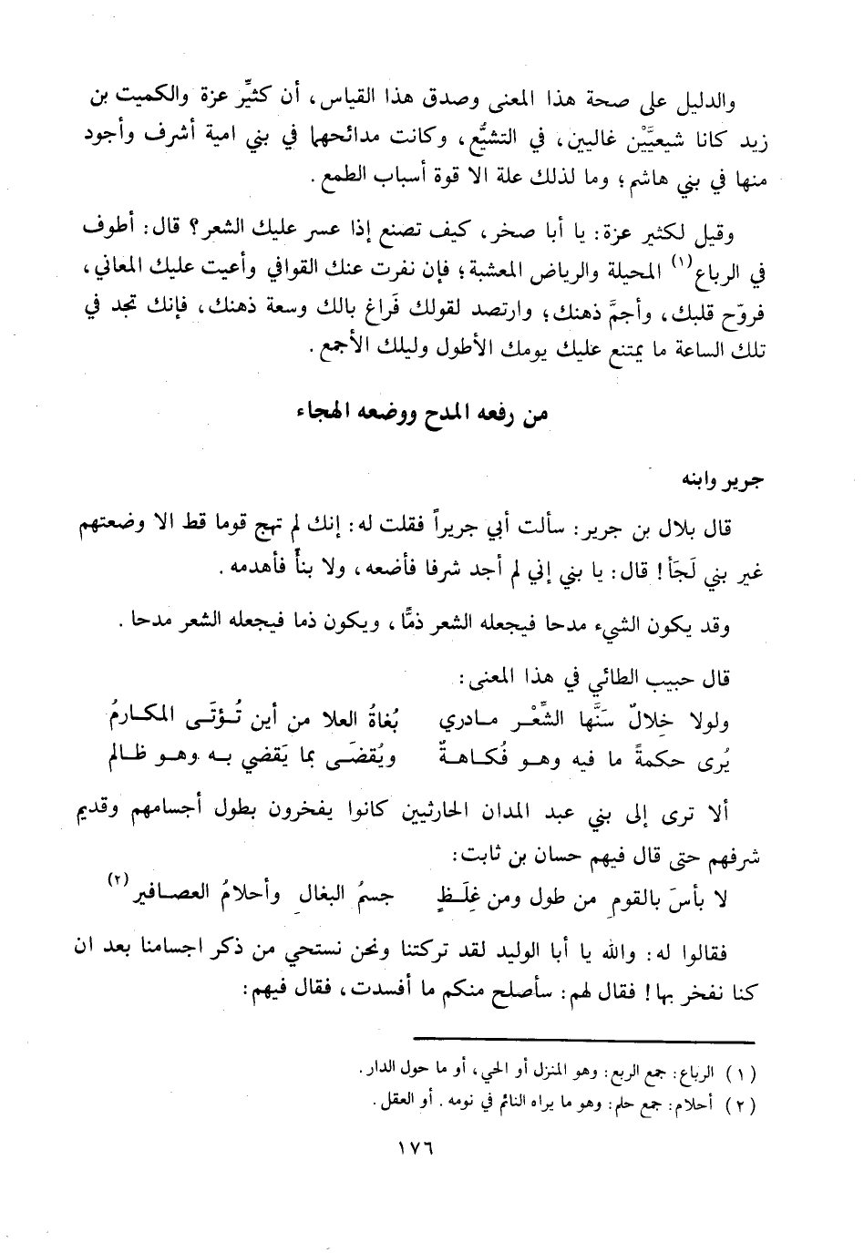 والدليل على صحة هذا المعنى وصدق هذا القياس، أن كثيّر عزة والكميت بن زيد كانا شيعيّين غاليين، في التشيّع، وكانت مدائحهما في بني امية أشرف وأجود منها في بني هاشم، وما لذلك علة الا قوة أسباب الطمع.