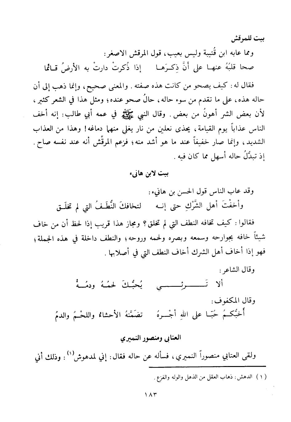 ولقى العتابي منصورا النميري، فسأله عن حاله فقال: إني لمدهوش «1» : وذلك أني
