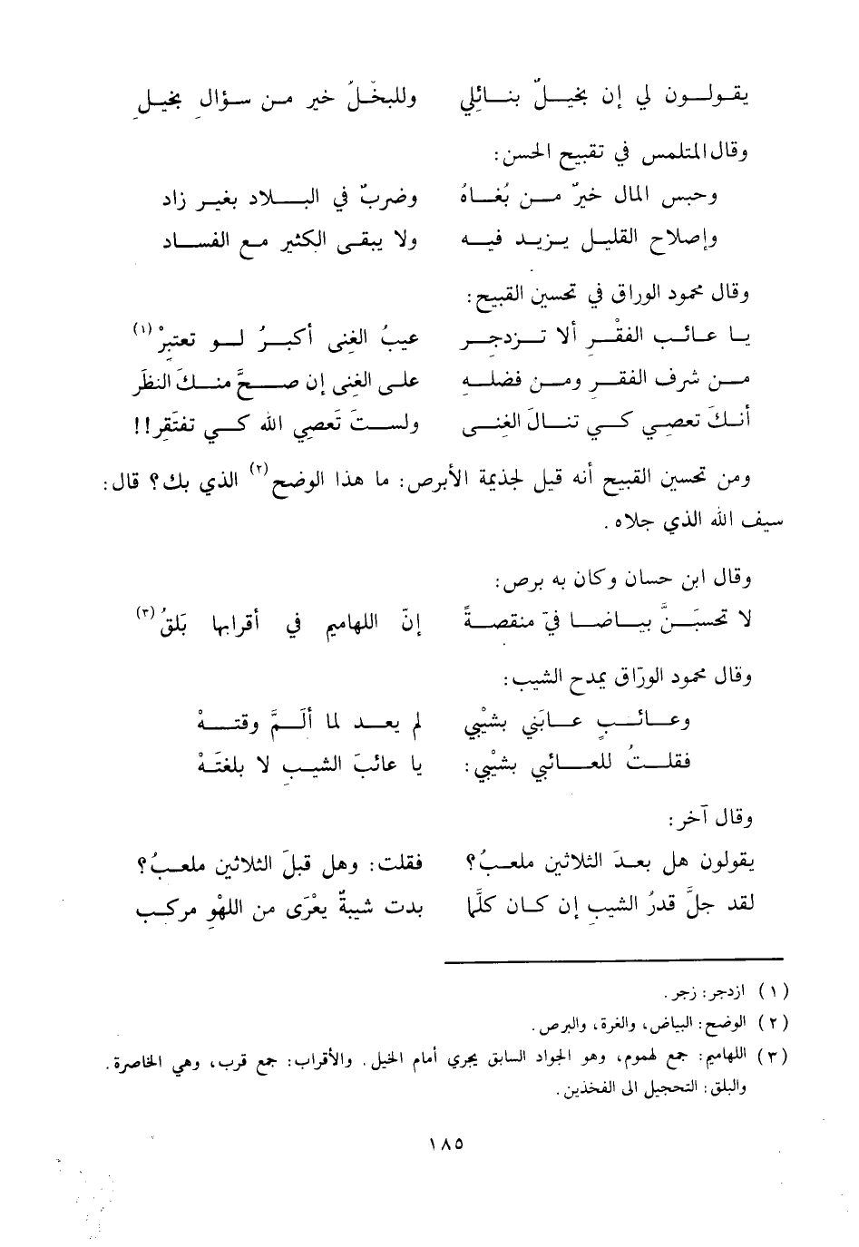 وقال محمود الوراق في تحسين القبيح: