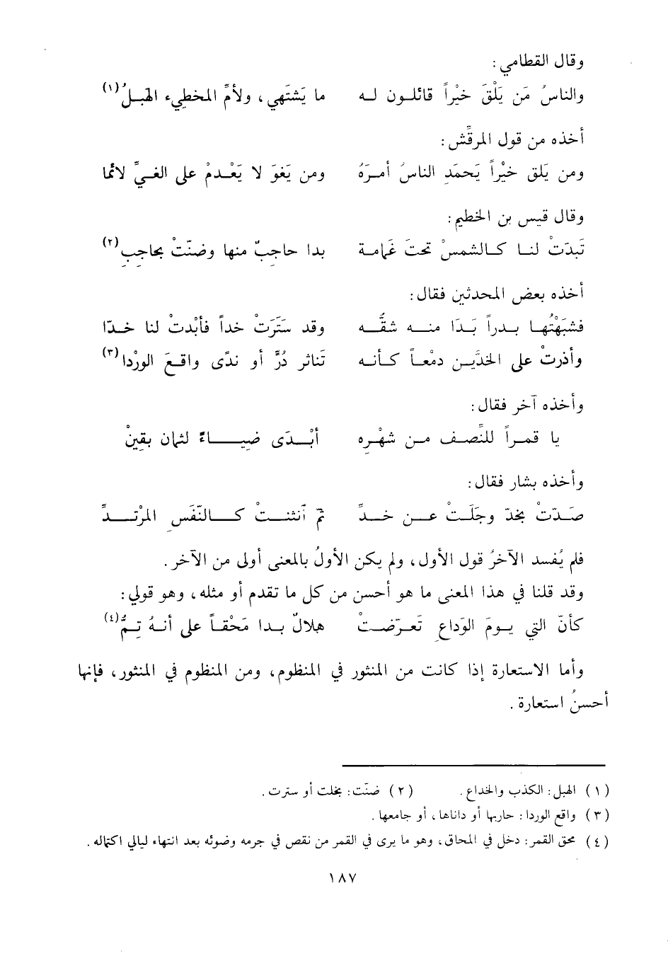 كأنّ التي يوم الوداع تعرّضت ... هلال بدا محقا على أنه تمّ «4»
