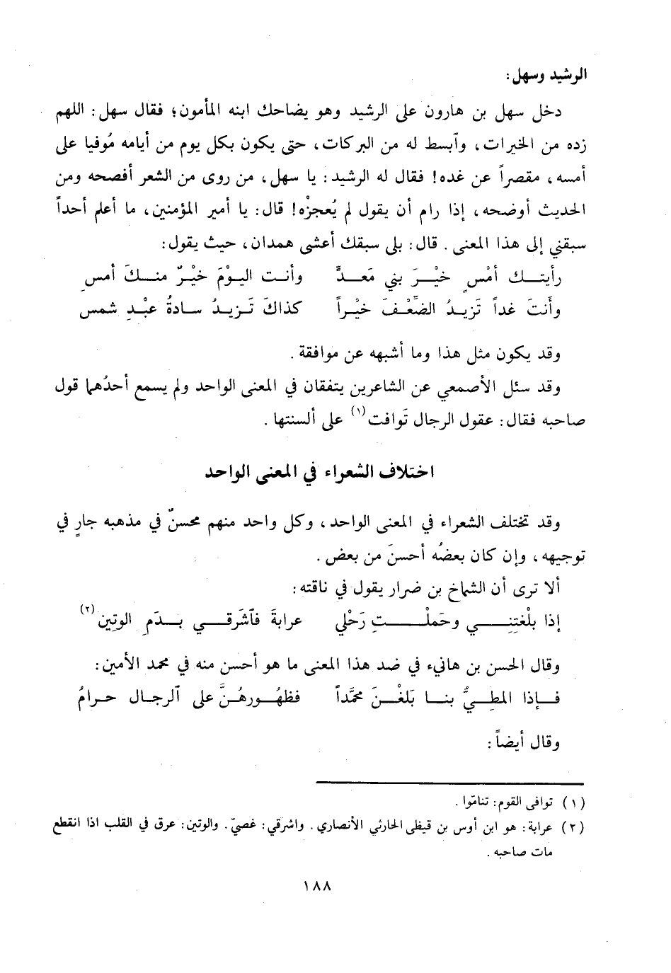 وقد سئل الأصمعي عن الشاعرين يتفقان في المعنى الواحد ولم يسمع أحدهما قول صاحبه فقال: عقول الرجال توافت «1» على ألسنتها.