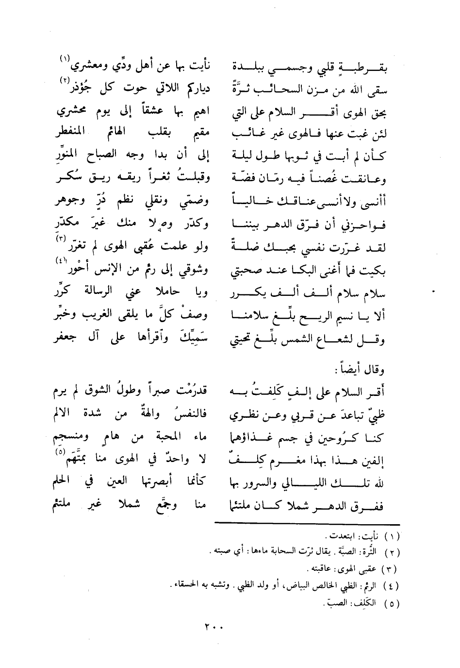 ألا يا نسيم الريح بلّغ سلامنا ... وصف كلّ ما يلقى الغريب وخبّر