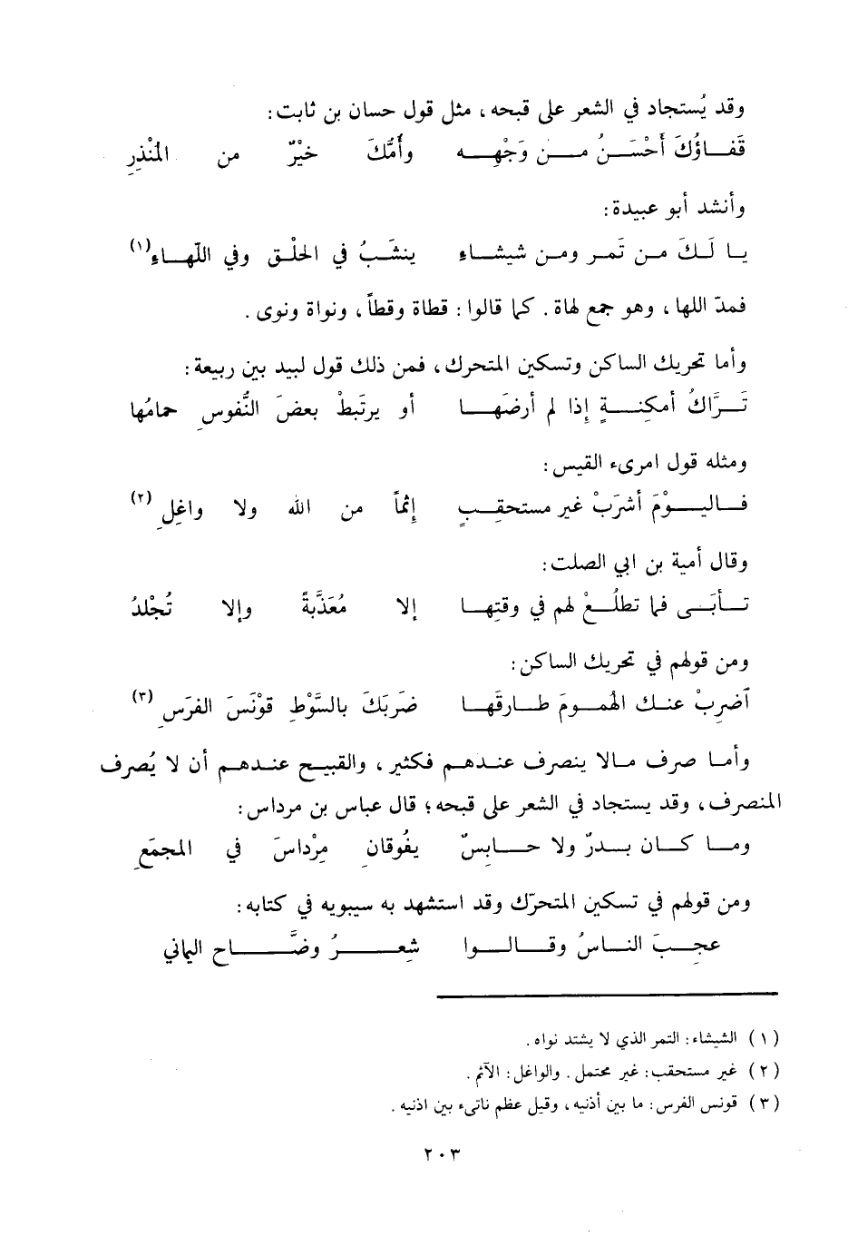 وأما صرف ما لا ينصرف عندهم فكثير، والقبيح عندهم أن لا يصرف المنصرف، وقد يستجاد في الشعر على قبحه، قال عباس بن مرداس: