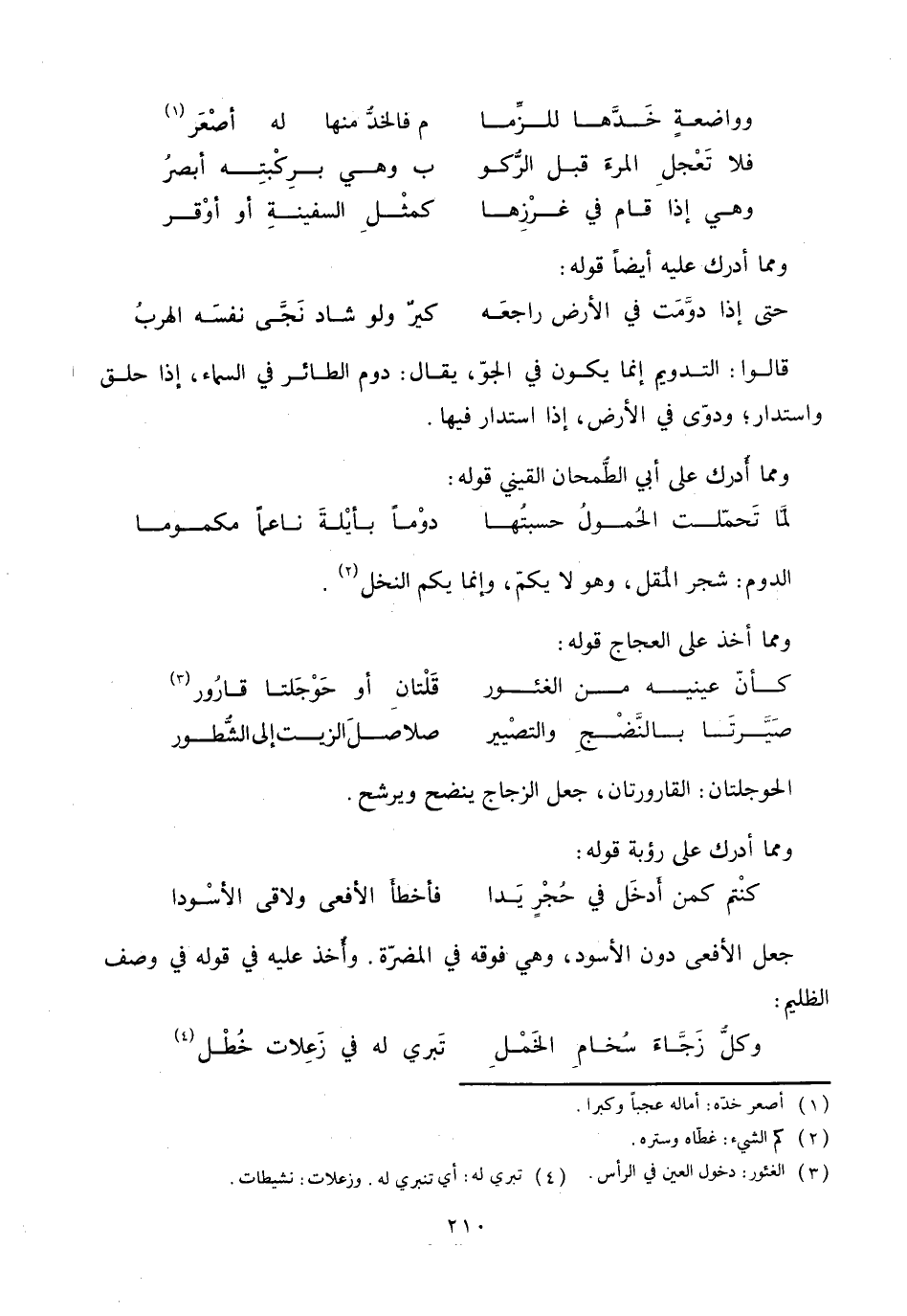 جعل الأفعى دون الأسود، وهي فوقه في المضرّة. وأخذ عليه في قوله في وصف الظليم: