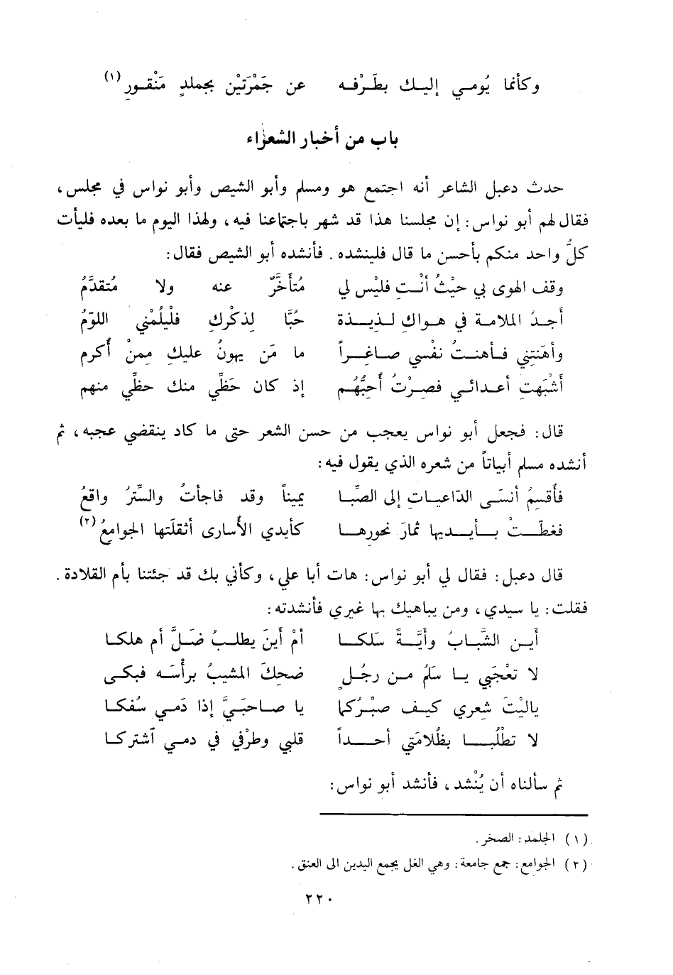 قال دعبل: فقال لي أبو نواس: هات أبا علي، وكأني بك قد جئتنا بأم القلادة.