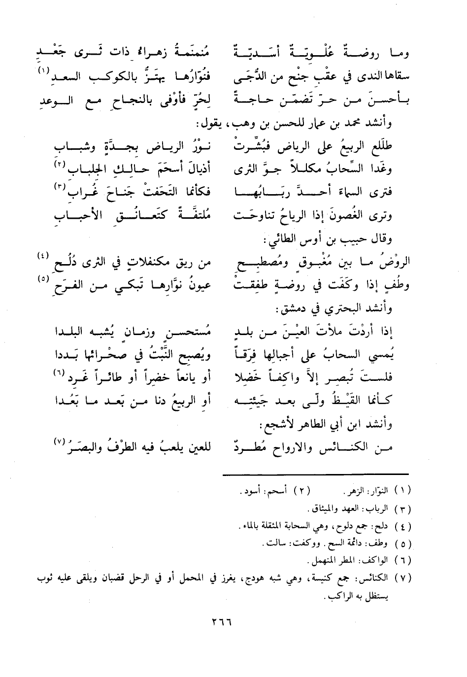 سقاها الندى في عقب جنح من الدّجى ... فنوّارها يهتزّ بالكوكب السعد «1»