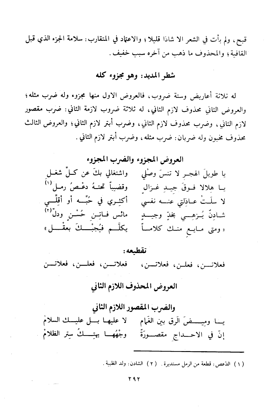 العروض المحذوف اللازم الثاني والضرب المقصور اللازم الثاني