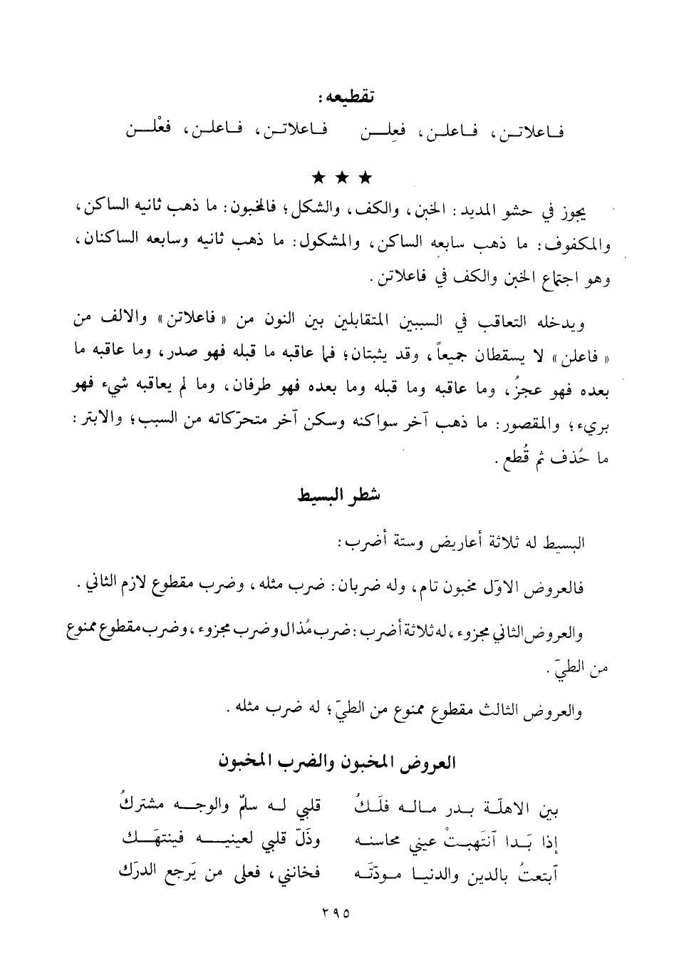 البسيط له ثلاثة أعاريض وستة أضرب: