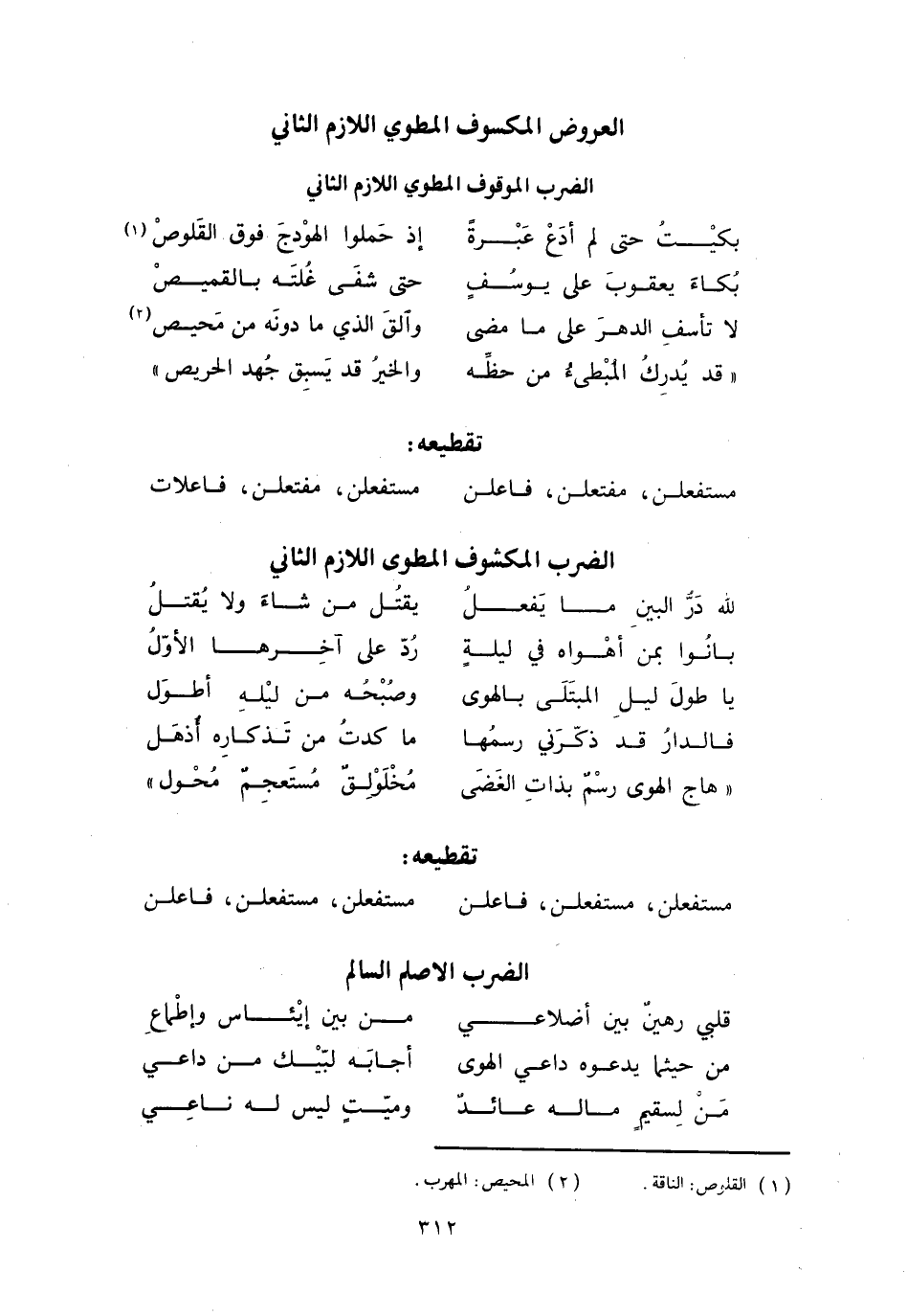 العروض المكسوف المطوي اللازم الثاني الضرب الموقوف المطوى اللازم الثاني