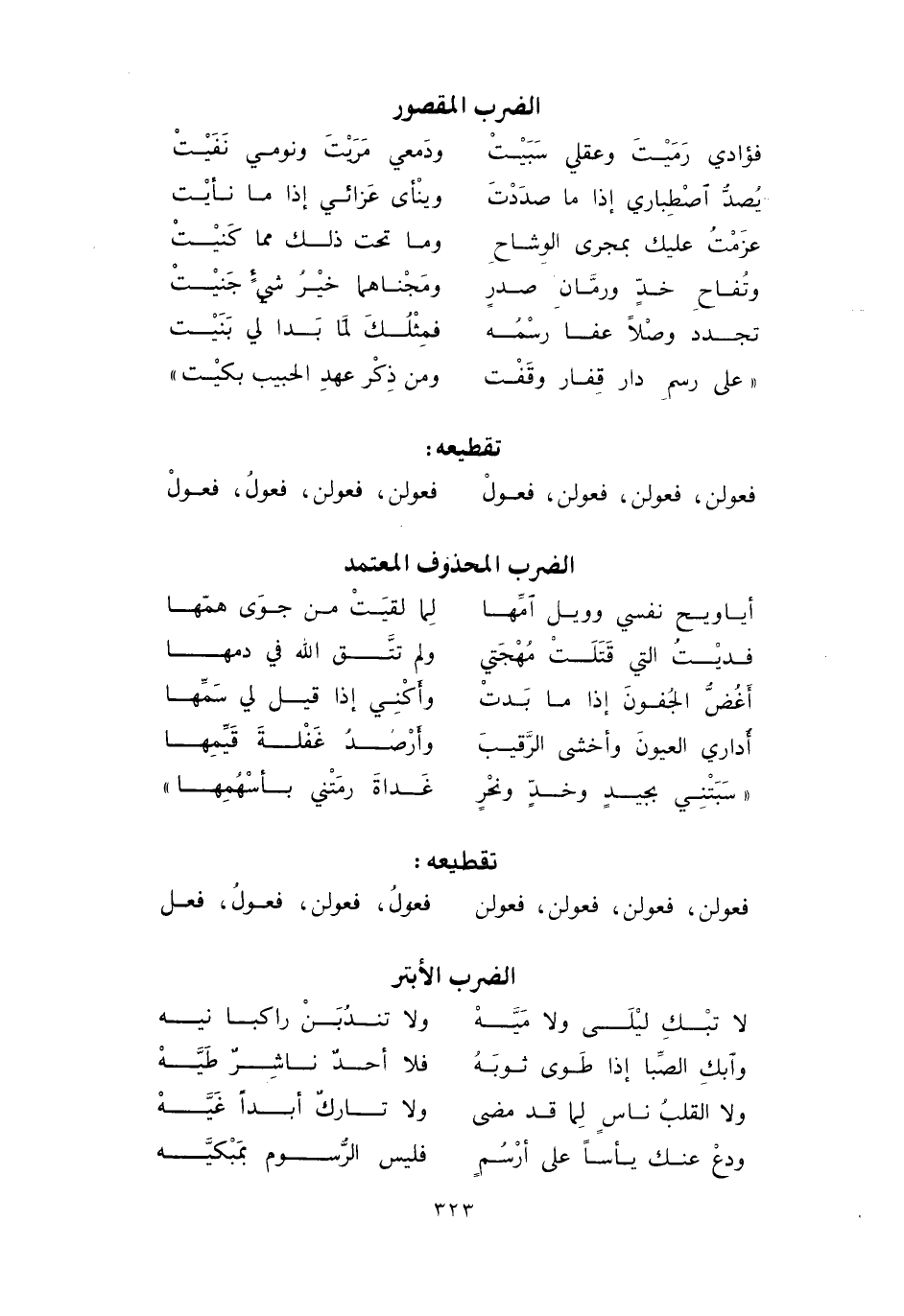 فعولن، فعولن، فعولن، فعولن ... فعول، فعولن، فعول، فعل