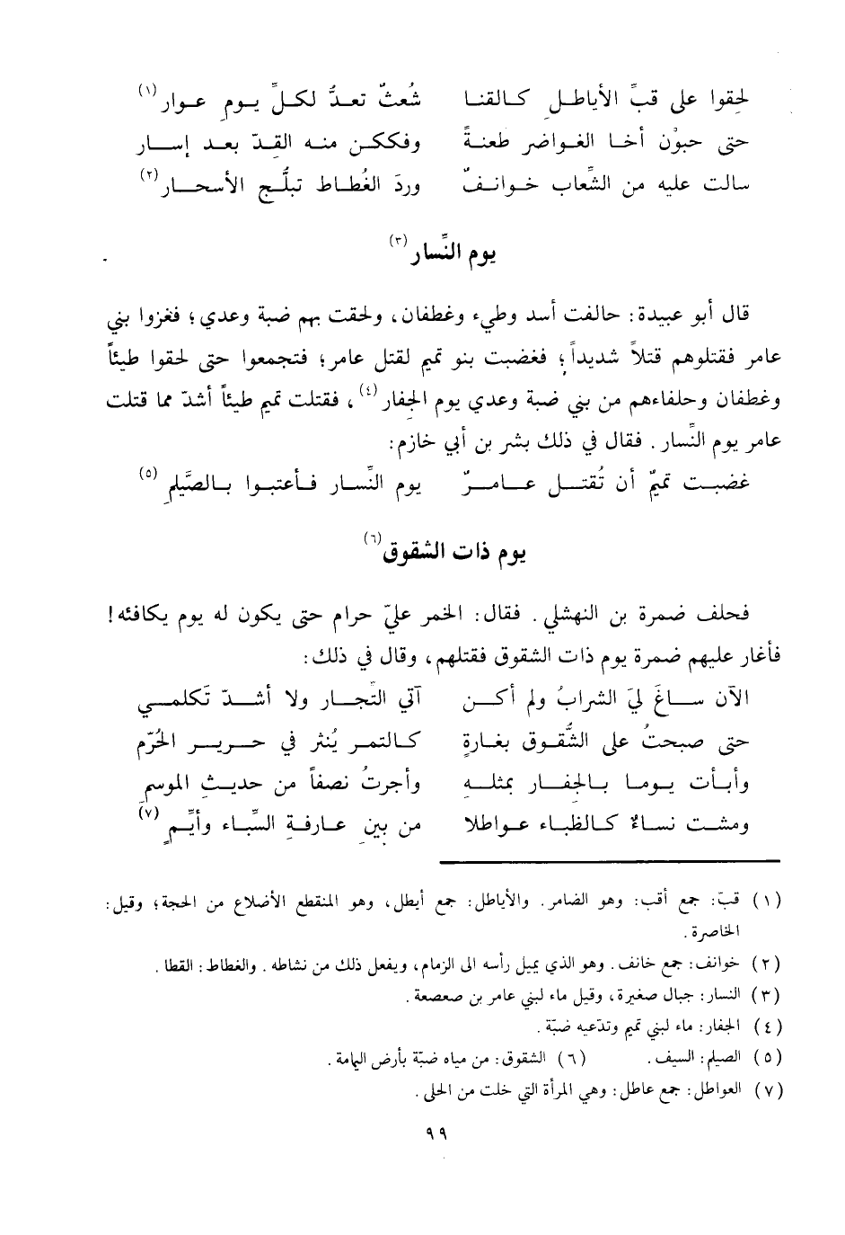 غضبت تميم أن تقتل عامر ... يوم النّسار فأعتبوا بالصّيلم «5»