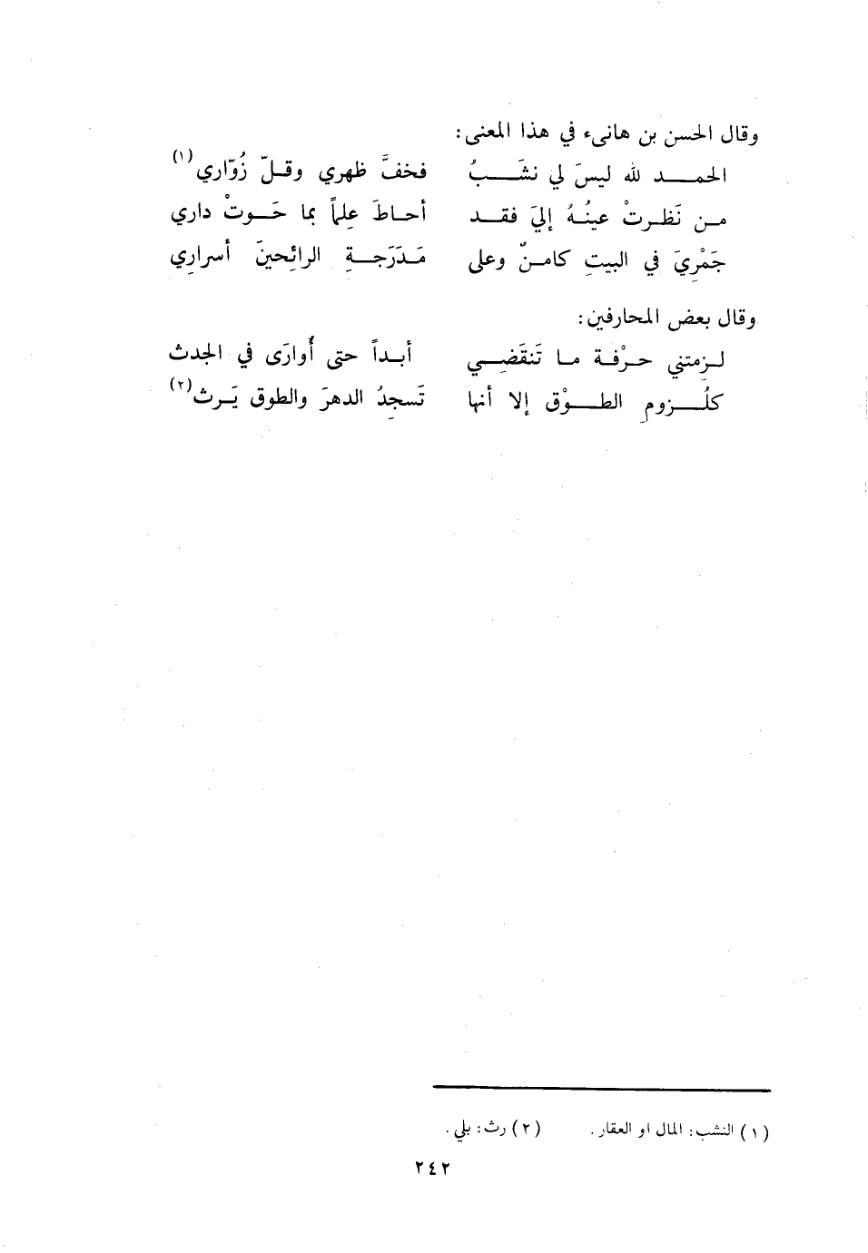 الحمد لله ليس لي نشب ... فخفّ ظهري وقلّ زوّاري»