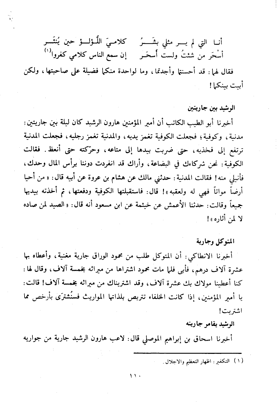 أخبرنا أبو الطيب الكاتب أن أمير المؤمنين هارون الرشيد كان ليلة بين جاريتين: