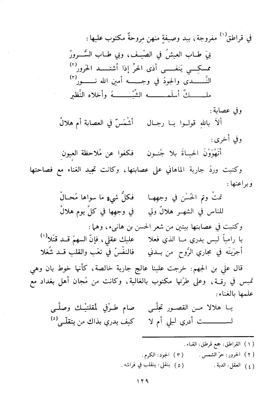 وكتبت ورد جارية الماهاني على عصابتها، وكانت تجيد الغناء مع فصاحتها وبراعتها: