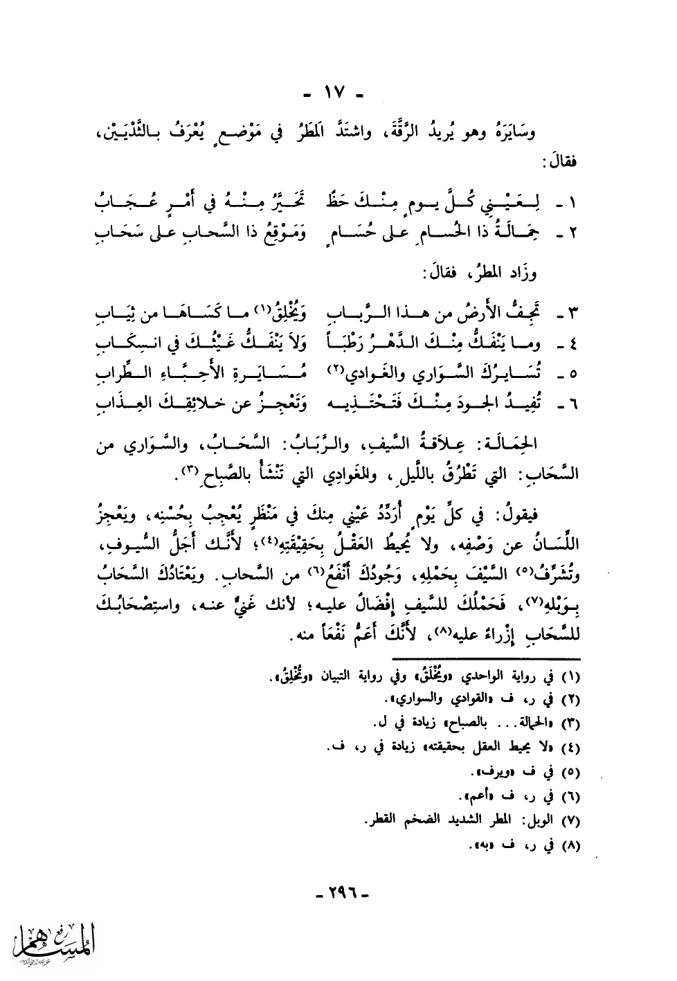 تَجِفُّ الأَرضُ من هذا الرَّبابِ ... وَيُخْلِقُ ما كَسَاهَا من ثِيَابِ