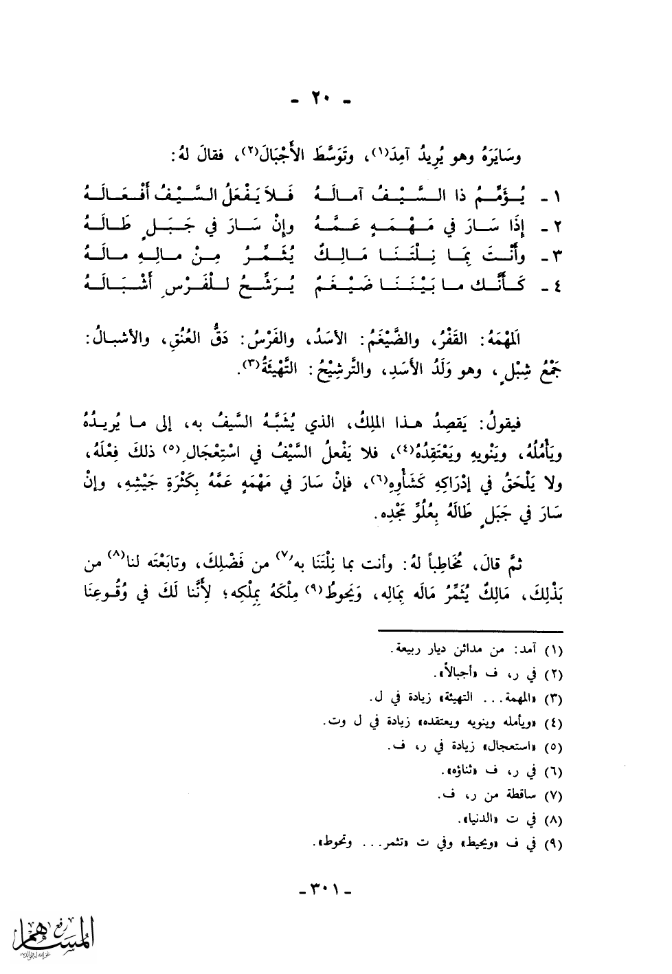 يُؤَمِّمُ ذا السَّيْفُ آمالَهُ ... فَلاَ يَفْعَلُ السَّيْفُ أفْعَالَهُ