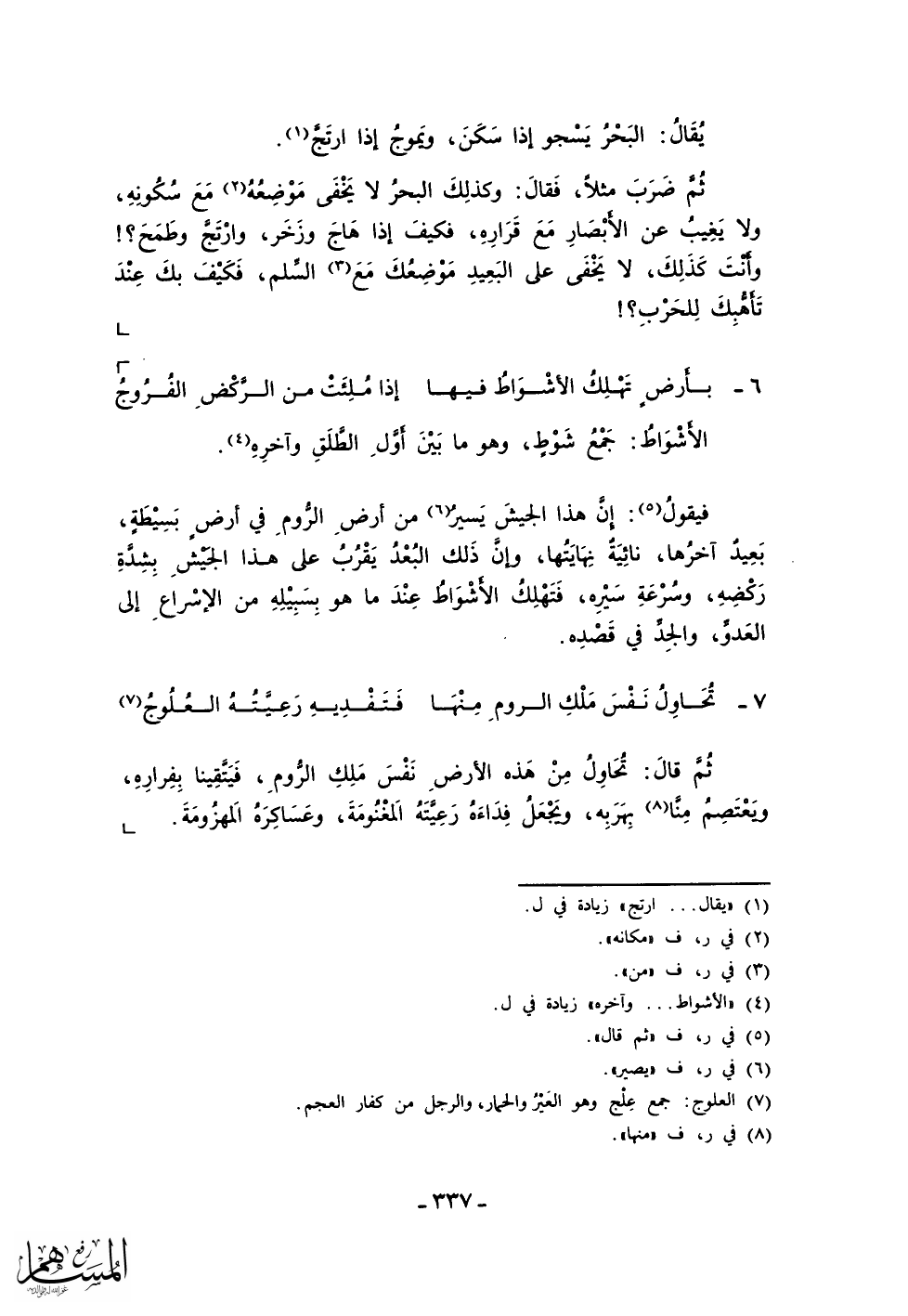 فيقول: إن هذا الجيش يسير من أرض الروم في أرض بسيطة، بعيد آخرها، نائية نهايتها، وإن ذلك البعد يقرب على هذا الجيش بشدة ركضه، وسرعة سيره، فتهلك الأِشواط عند ما هو بسبيله من الإسراع إلى العدو، والجد في قصده.