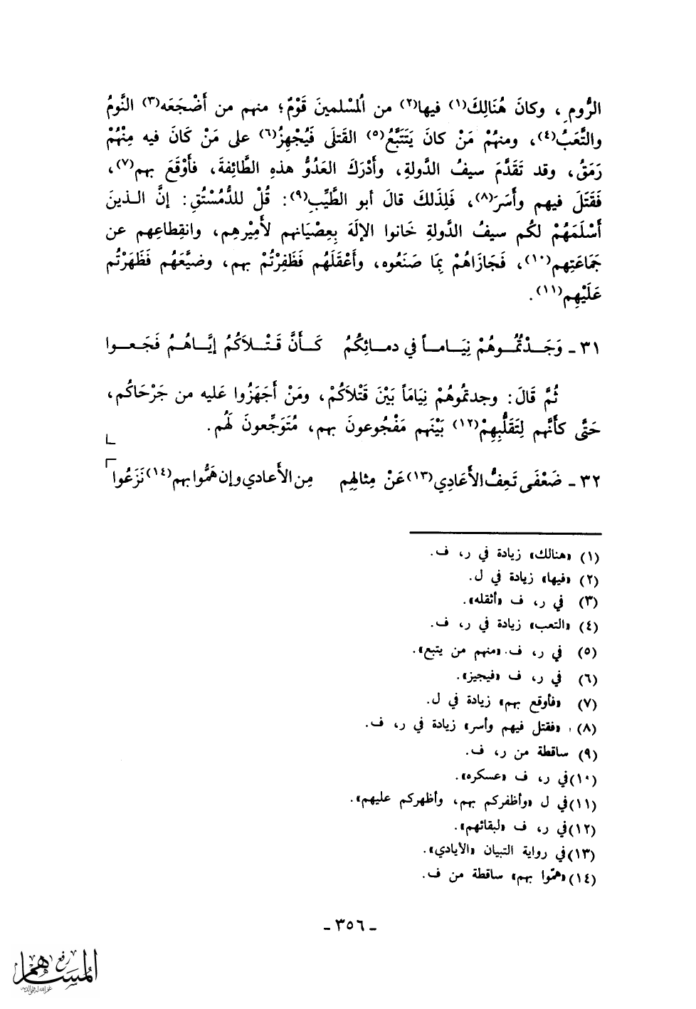 الروم، وكان هنالك فيها من المسلمين قوم؛ منهم من أضجعه النوم والتعب، ومنهم من كان يتتبع القتلى فيجهز على من كان فيه منهم رمق، وقد سيف الدولة، وأدرك العدو هذه الطائفة، فأوقع بهم، فقتل فيهم وأسر، فلذلك قال أبو الطيب: قل للدمستق: إن الذين أسلمهم لكم سيف الدولة خانوا الإله بعصيانهم لأميرهم، وانقطاعهم عن جماعتهم، فجازاهم بما صنعوه، وأعقلهم فظفرتم بهم، وضيعهم فظهرتم عليهم.