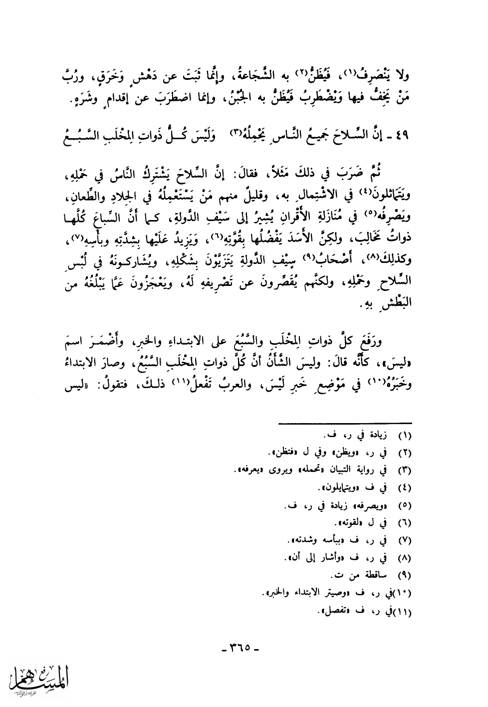 إنَّ السَّلاحَ جَميعُ النَّاس يَحْمِلُهُ ... وَلَيْس كُلُّ ذَواتِ المِخْلَبِ السَّبُعُ