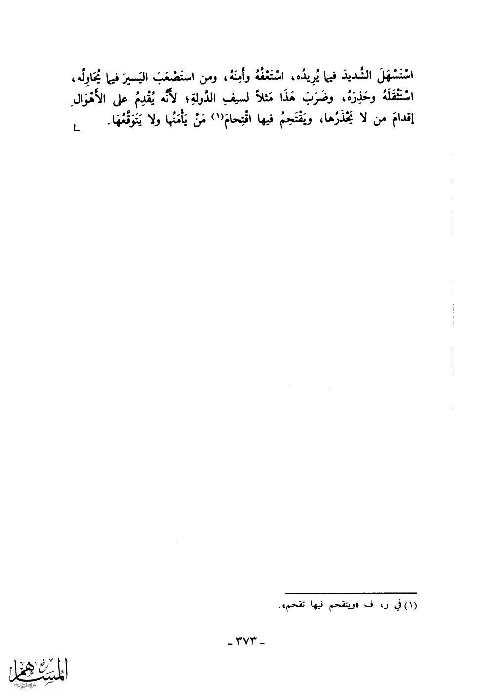 استسهل الشديد فيما يريده، استعفه وأمنه، ومن استصعب اليسير فيما يحاوله، استثقله وحذره، وضرب هذا مثلاً لسيف الدولة؛ لأنه يقدم على الأهوال إقدام من لا يحذرها، ويقتحم فيها اقتحام من يأمنها ولا يتوقعها.