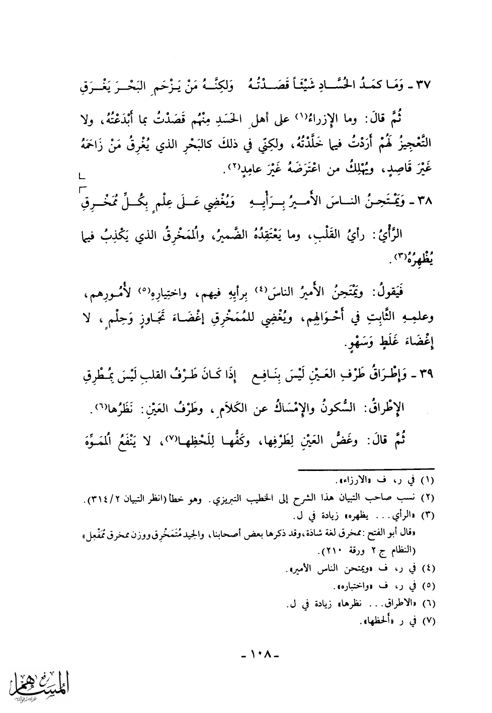أحوالهم، ويغضي للممخرق إغضاء تجاوز وحلم، لا إغضاء غلط وسهو.