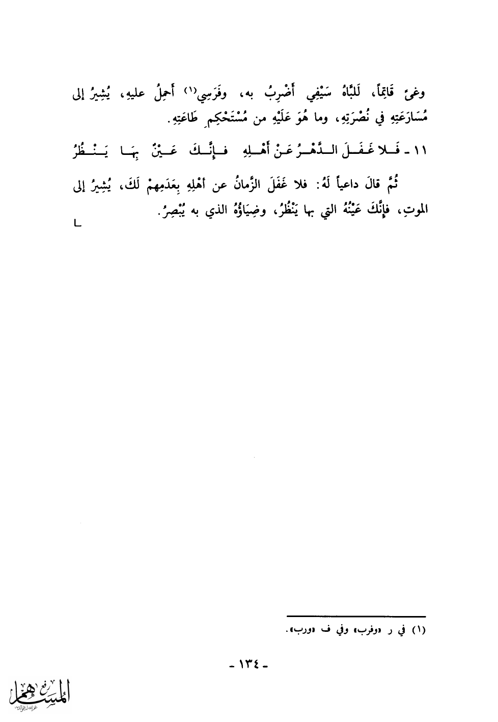 فَلا غَفَلَ الدَّهْرُ عَنْ أَهْلِهِ ... فإنَّكَ عَيْنُ بِهَا يَنْظُرُ