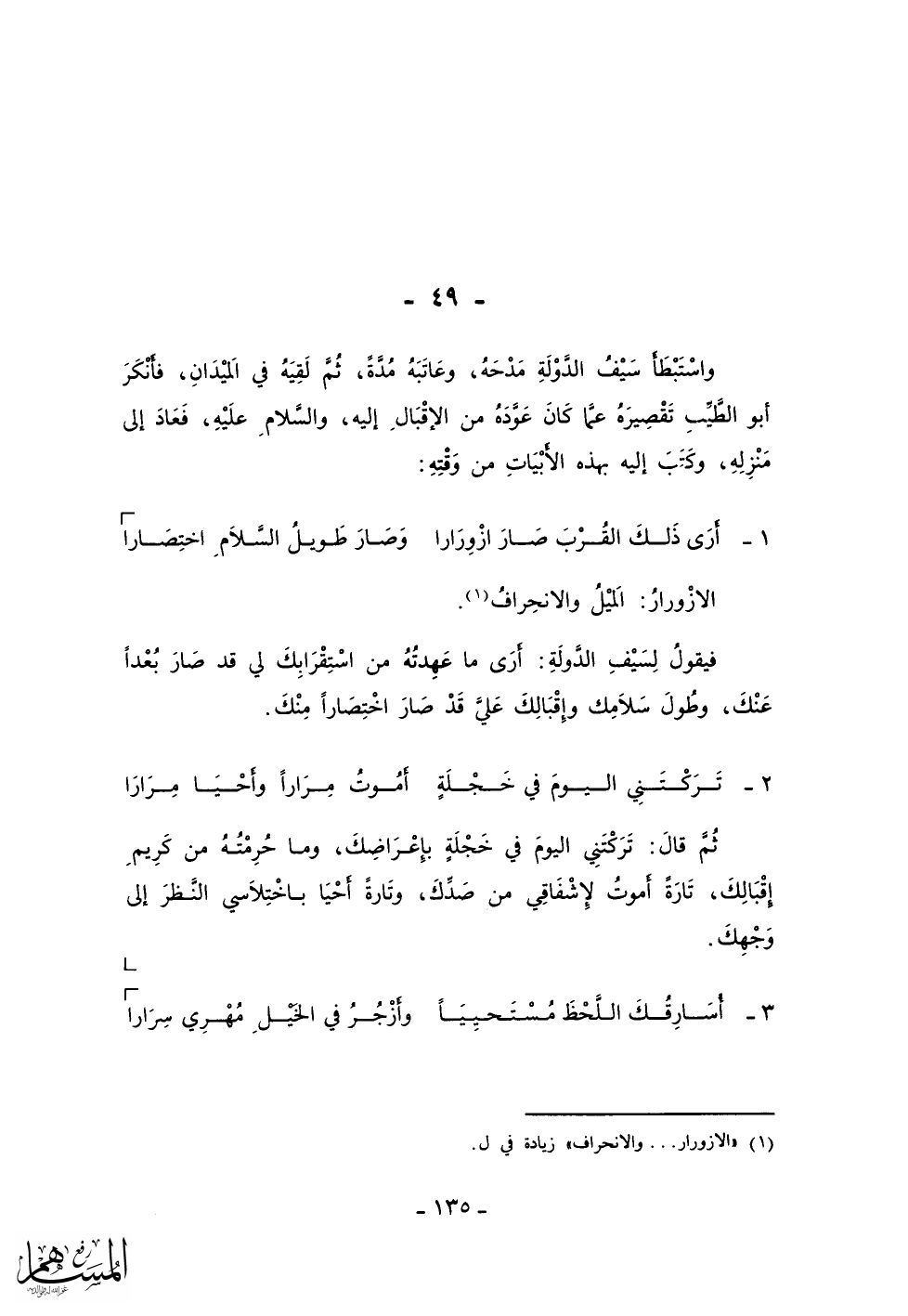 أَرَى ذَلَكَ القُرْبَ صَارَ ازْوِرَارا ... وَصَارَ طَويلُ السَّلامِ اختِصَارا