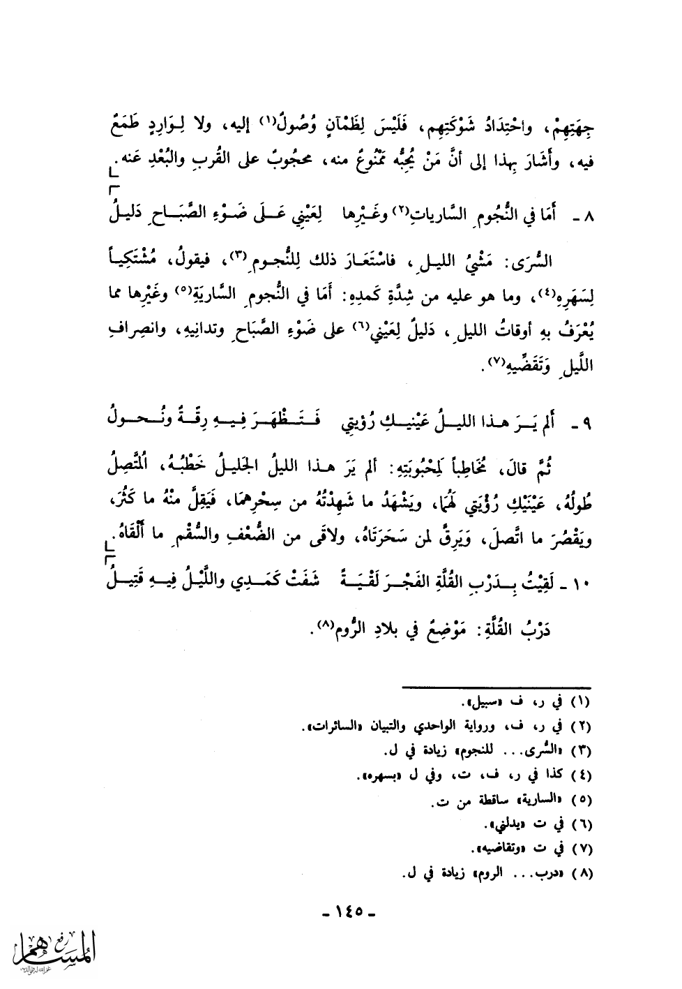 أَمَا في النُّجُومِ السَّارياتِ وغَيْرِها ... لِعَيْني عَلَى ضَوْءِ الصَّبَاحِ دَليلُ