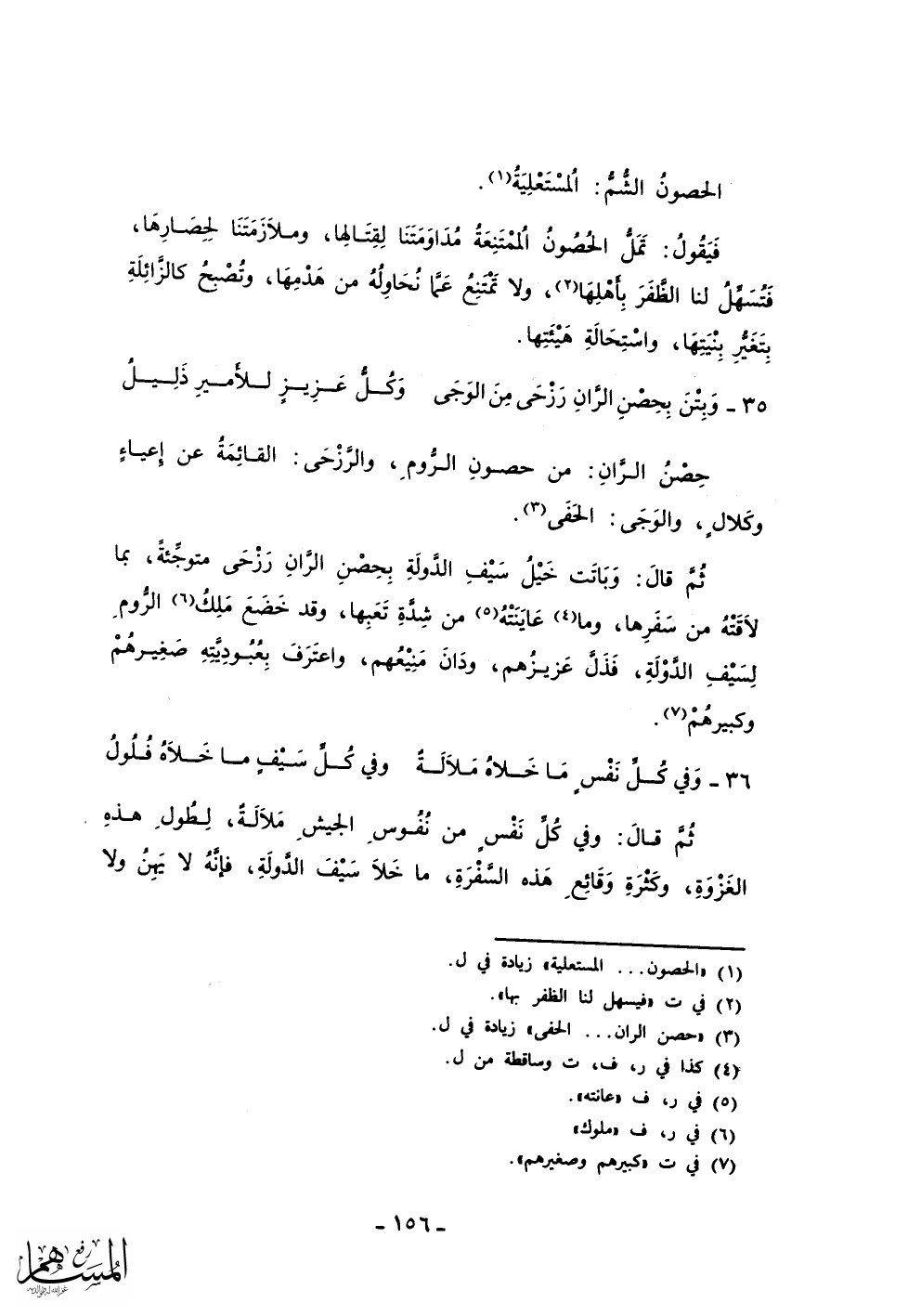 ثم قال: وباتت خيل سيف الدولة بحصن الران رزحي متوجئة، بما لاقته من سفرها، وما عاينته من شدة تعبها، وقد خضع ملك الروم لسيف الدولة، فذل عزيزهم، ودان منيعهم، واعترف بعبوديته صغيرهم وكبيرهم.