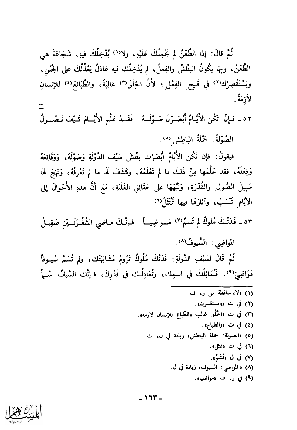 فيقول: فإن تكن الأيام أبصرت بطش سيف الدولة وصوله، ووقائعه وفعله، فقد علمها من ذلك ما لم تعلمه، وكشف لها ما تعرفه، ونهج لها سبيل الصول والقدرة، ونبهها على حقائق الغلبة، مع أن هذه الأحوال إلى الأيام تنسب، وآثارها فيها تمثل.