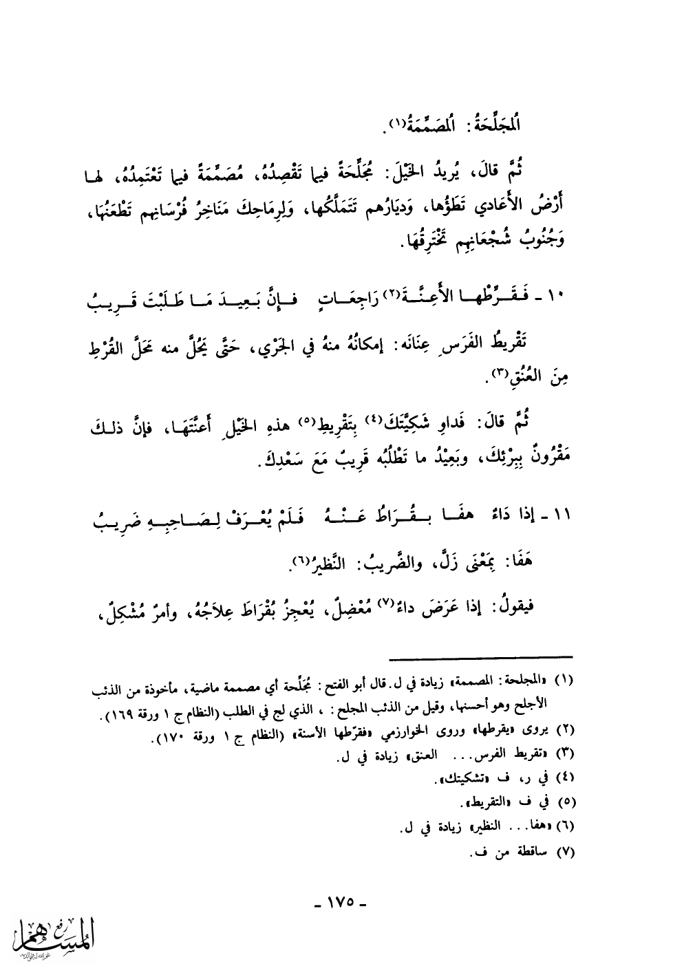 ثم قال: فداو شكيتك بتقريط هذه الخيل أعنتها، فإن ذلك مقرون ببرئك، وبعيد ما تطلبه قريب مع سعدك.