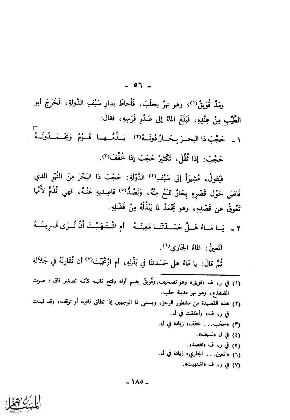 يَا مَاءُ هَلْ حَسَدْتَنَا مَعِينَهُ ... أم اشْتَهَيْتَ أَنْ تُرَىَ قَرِينَهُ