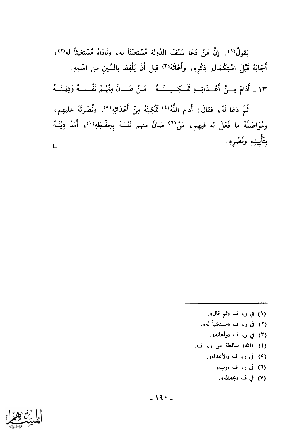 أَدَامَ مِنْ أَعْدَائِهِ تَمْكِينَهُ ... مَنْ صَانَ مِنْهُمْ نَفْسَهُ وَدِيْنهُ