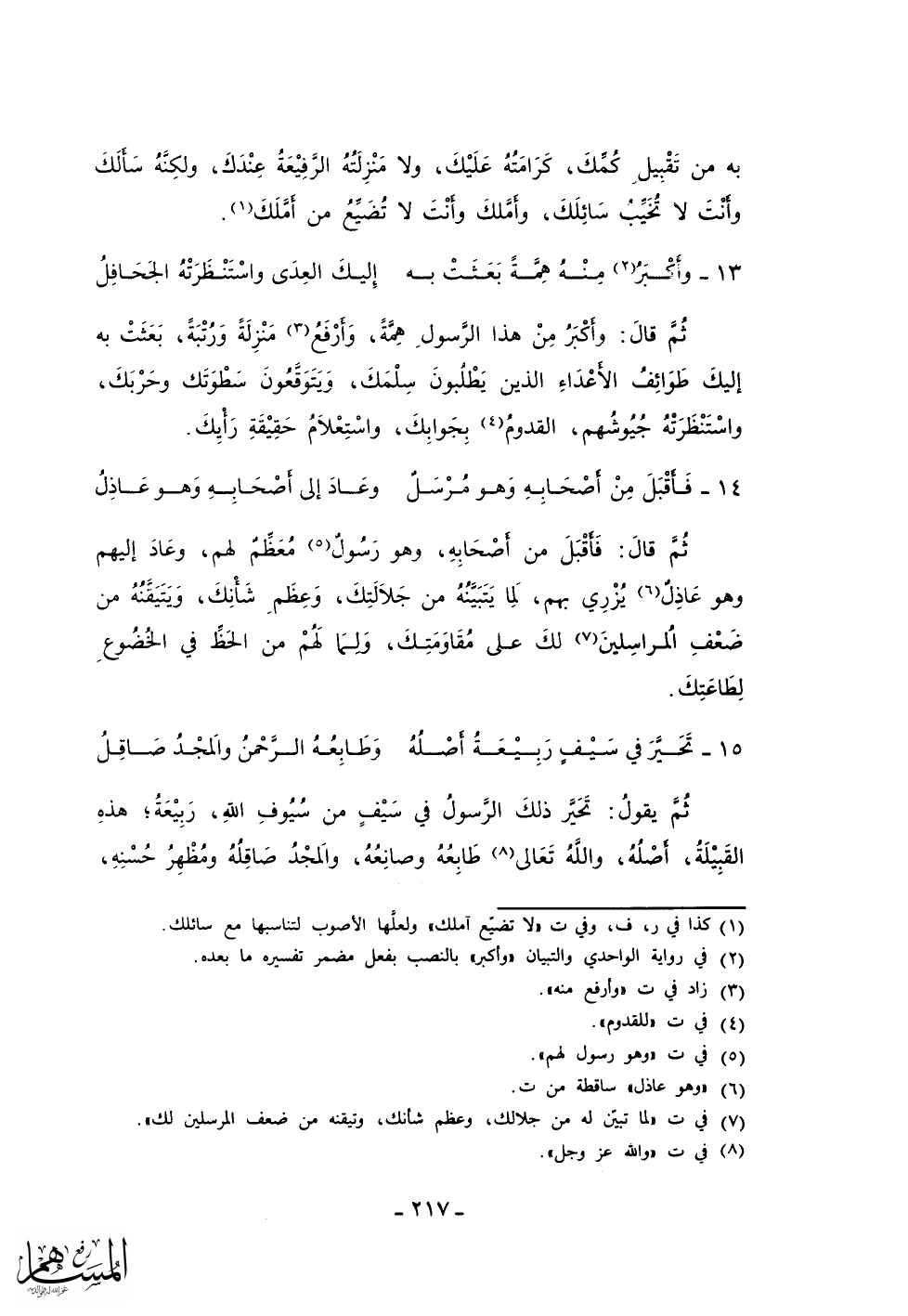 به من تقبيل كمك، كرامته عليك، ولا منزلته الرفيعة عندك، ولكنه سألك وأنت لا تخيب سائلك، وأملك وأنت لا تضيع من أملك.