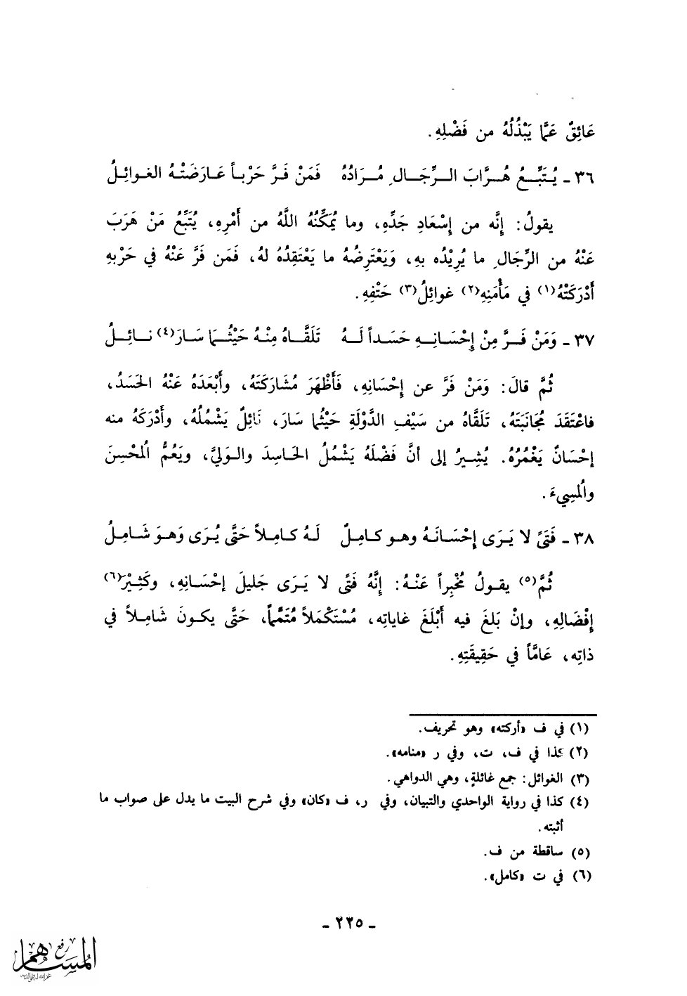 ثم يقول مخبراً عنه: إنه فتى لا يرى جليل إحسانه، وكثير إفضاله، وإن بلغ فيه أبلغ غاياته، مستكملاً متمماً، حتى يكون شاملاً في ذاته، عاماً في حقيقته.