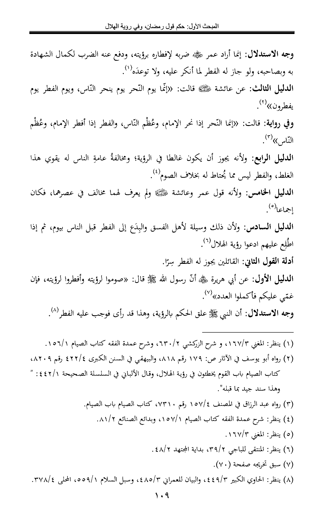 الدليل الرابع: ولأنه يجوز أن يكون غالطا في الرؤية؛ ومخالفةُ عامةِ الناس له يقوي هذا الغلط, والفطر ليس مما يُحتاط له بخلاف الصوم (¬4).