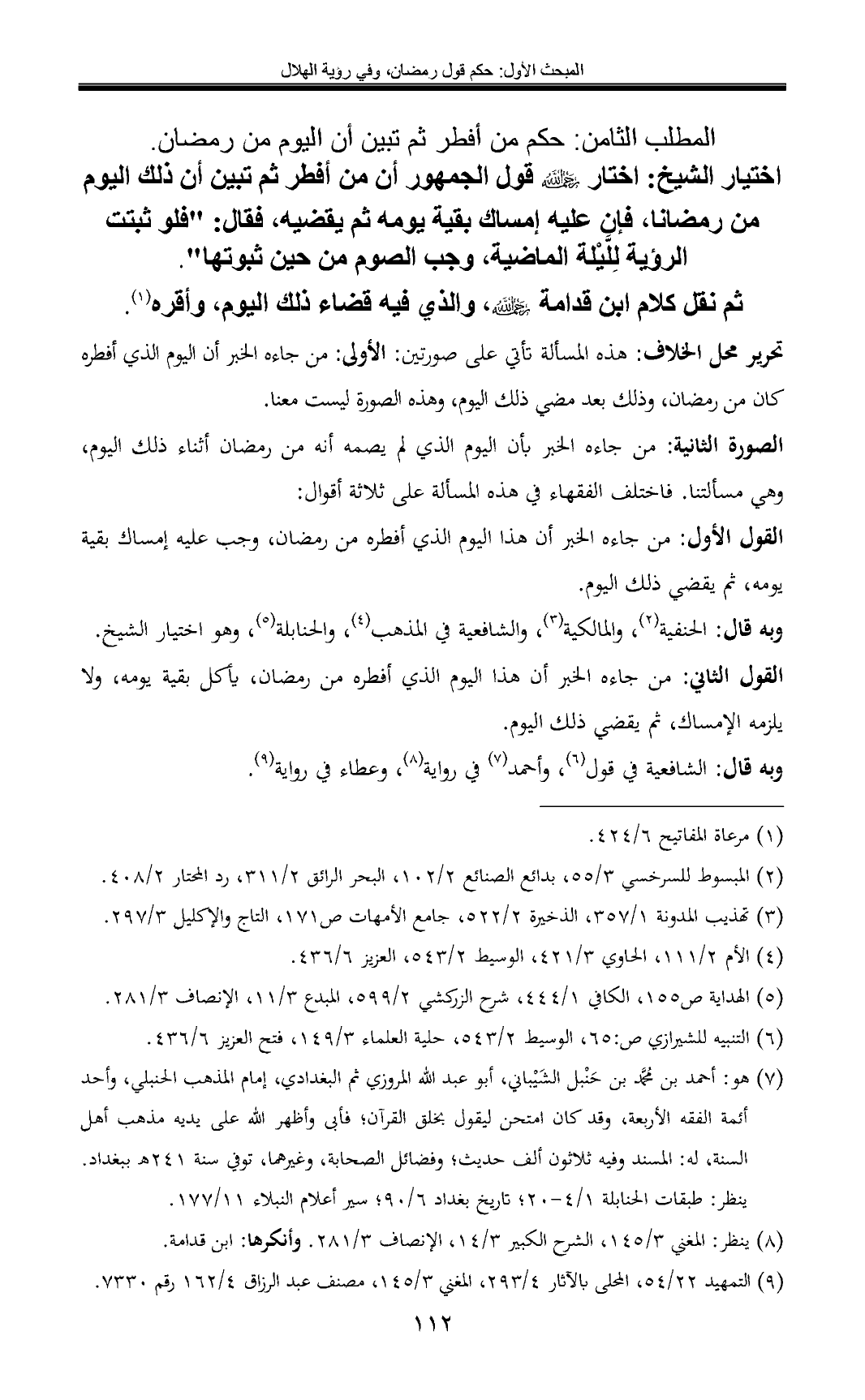(¬5) الهداية ص 155, الكافي 1/ 444, شرح الزركشي 2/ 599، المبدع 3/ 11, الإنصاف 3/ 281.