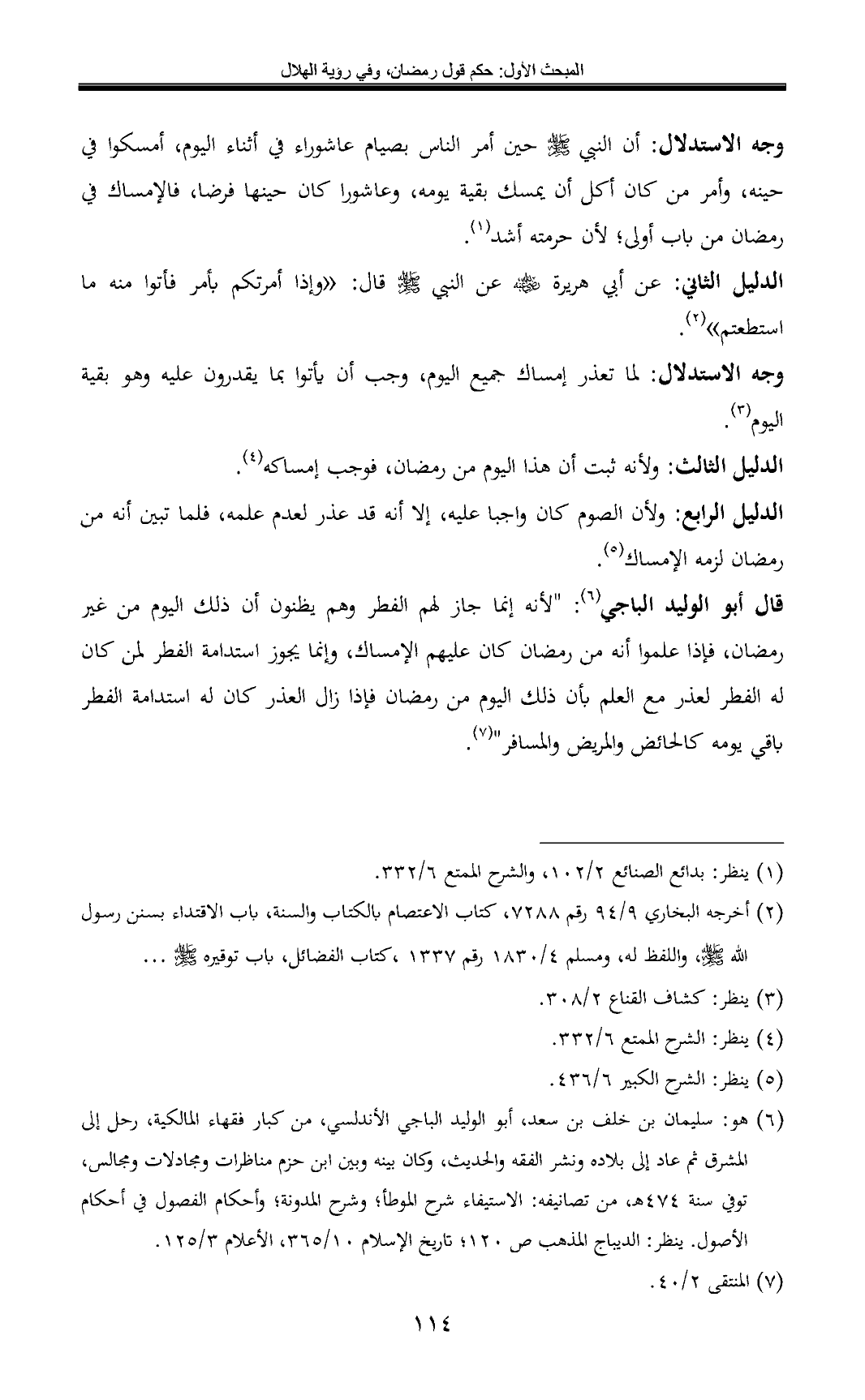 (¬6) هو: سليمان بن خلف بن سعد، أبو الوليد الباجي الأندلسي، من كبار فقهاء المالكية, رحل إلى المشرق ثم عاد إلى بلاده ونشر الفقه والحديث, وكان بينه وبين ابن حزم مناظرات ومجادلات ومجالس, توفي سنة 474 هـ, من تصانيفه: الاستيفاء شرح الموطأ؛ وشرح المدونة؛ وأحكام الفصول في أحكام الأصول. ينظر: الديباج المذهب ص 120؛ تاريخ الإسلام 10/ 365, الأعلام 3/ 125.