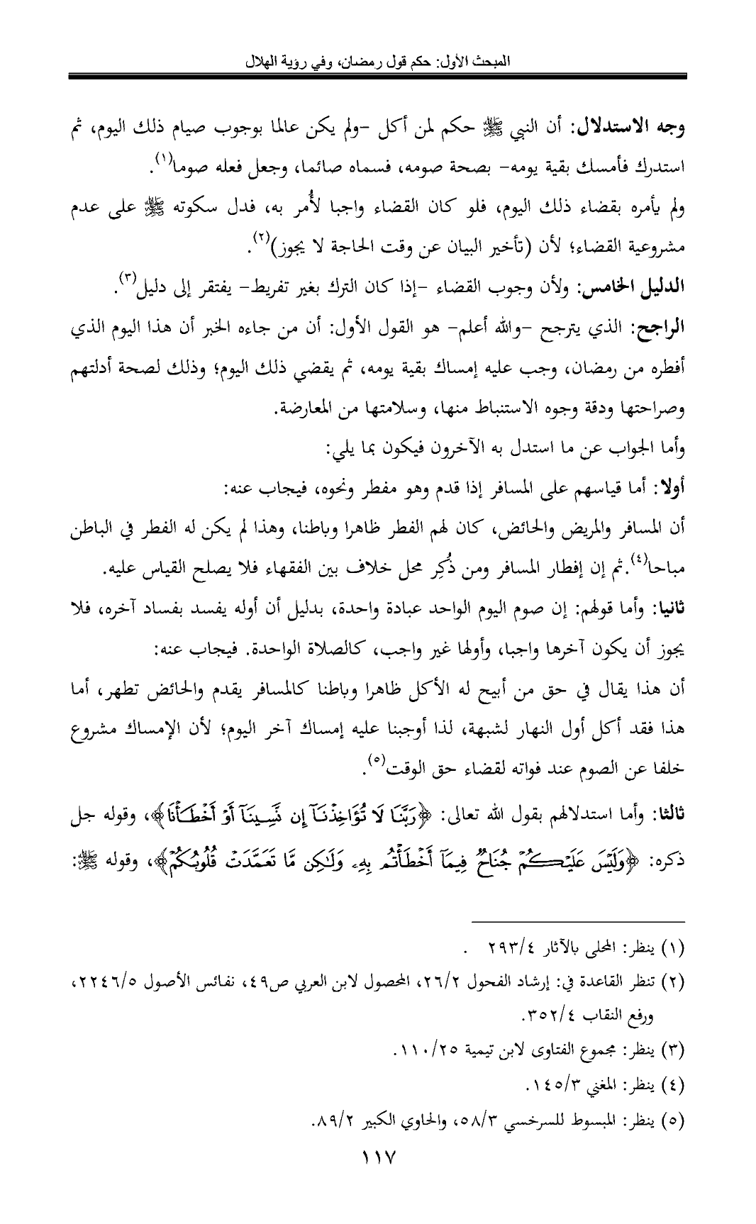 الراجح: الذي يترجح -والله أعلم- هو القول الأول: أن من جاءه الخبر أن هذا اليوم الذي أفطره من رمضان، وجب عليه إمساك بقية يومه، ثم يقضي ذلك اليوم؛ وذلك لصحة أدلتهم وصراحتها ودقة وجوه الاستنباط منها، وسلامتها من المعارضة.