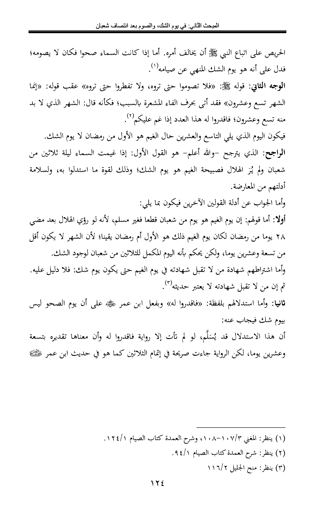 (¬1) ينظر: المغني 3/ 107 - 108، وشرح العمدة كتاب الصيام 1/ 124.