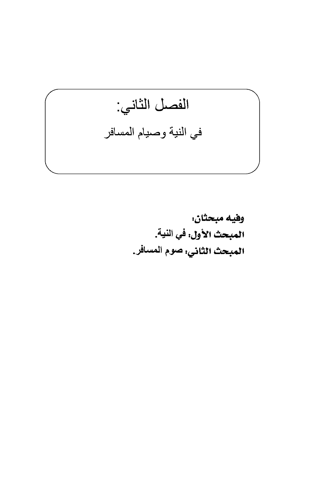الفصل الثاني: في النية وصيام المسافر