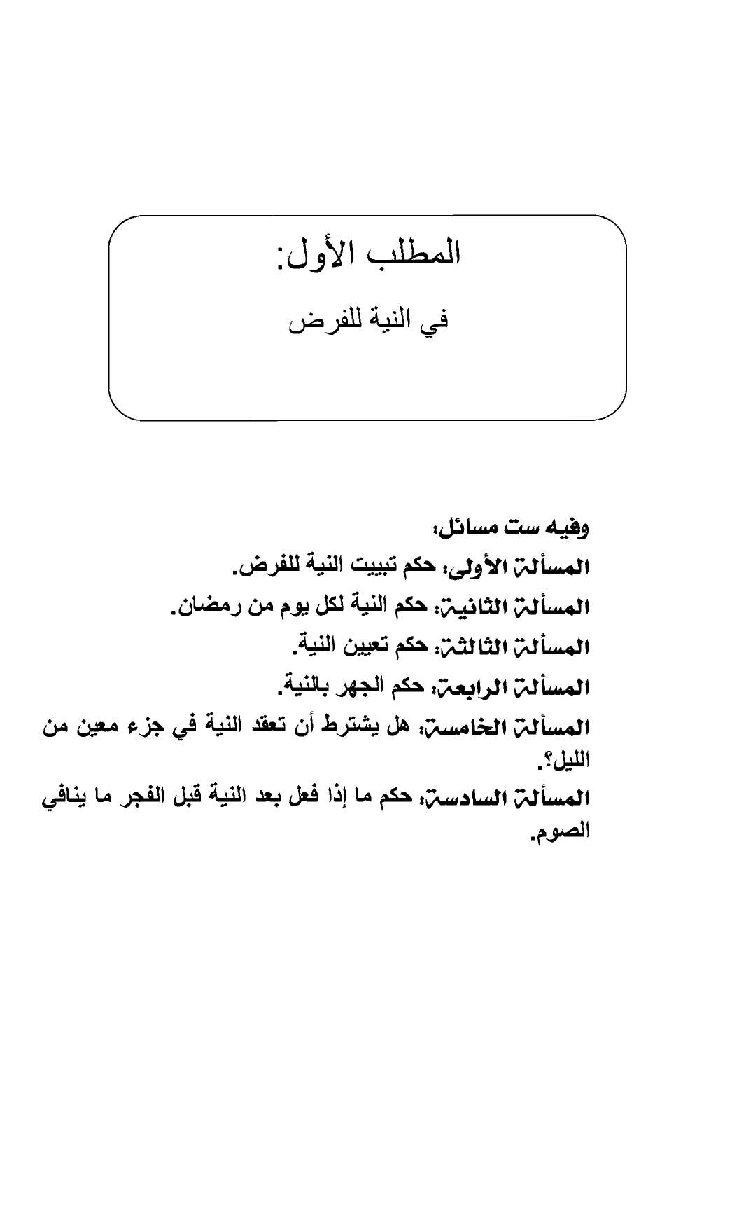 المسألة الأولى: حكم تبييت النية للفرض.