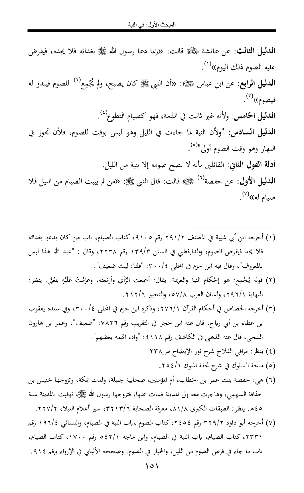 الدليل الأول: عن حفصة (¬6) - رضي الله عنها - قالت: قال النبي - صلى الله عليه وسلم -: «من لم يبيت الصيام من الليل فلا صيام له» (¬7).