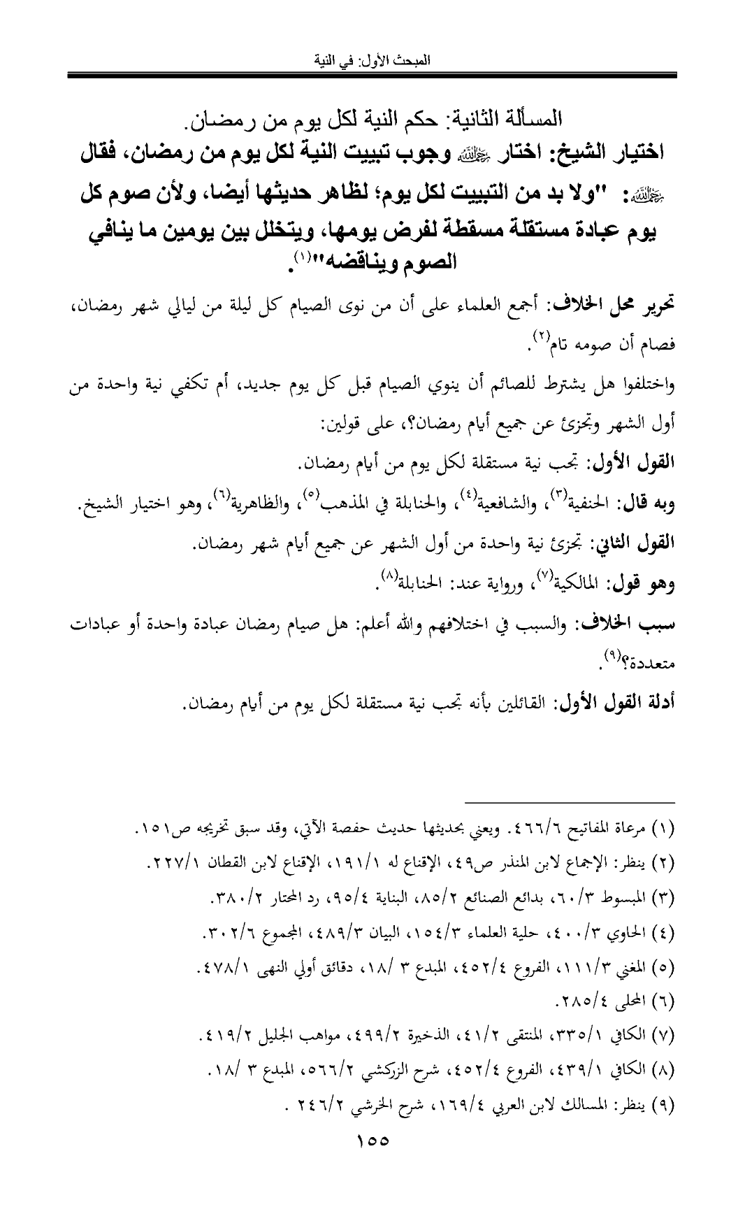 المسألة الثانية: حكم النية لكل يوم من رمضان.