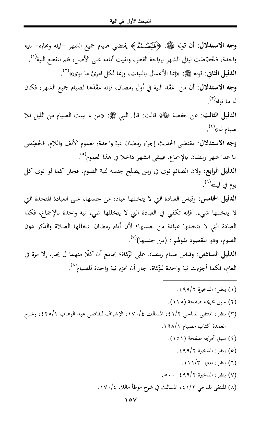 (¬3) ينظر: المنتقى للباجي 2/ 41، المسالك 4/ 170، الإشراف للقاضي عبد الوهاب 1/ 425، وشرح العمدة كتاب الصيام 1/ 198.