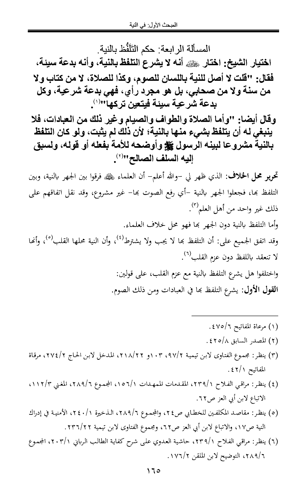 (¬5) ينظر: مقاصد المكلفين للخطابي ص 24، والمجموع 6/ 289، الذخيرة 1/ 240، الأمنية في إدراك النية ص 17، والاتباع لابن أبي العز ص 62، ومجموع الفتاوى لابن تيمية 22/ 236.